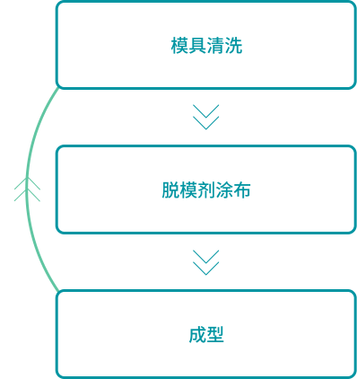 • 成型后脱模性下降的情况下,再次进行模具清洗以及脱模剂涂布